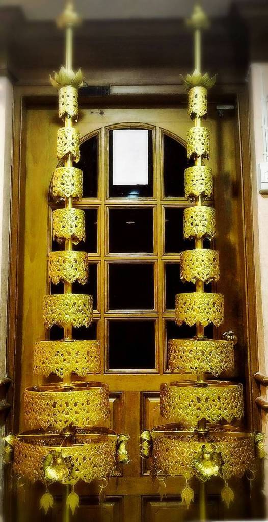 ฉัตรเงิน ฉัตรทอง ควรวางอย่างไร การจัดถวาย ฉัตรเงิน ฉัตรทอง ที่ถูกต้อง คือ