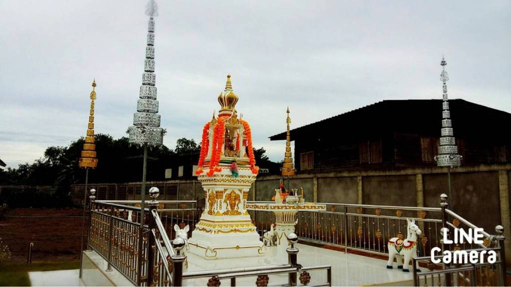 ฉัตรศาลพระภูมิ และ ศาลตายาย นิยมใช้ สีเงิน / สีทอง ตั้งถวาย 2 ข้าง หรือ 4 มุม